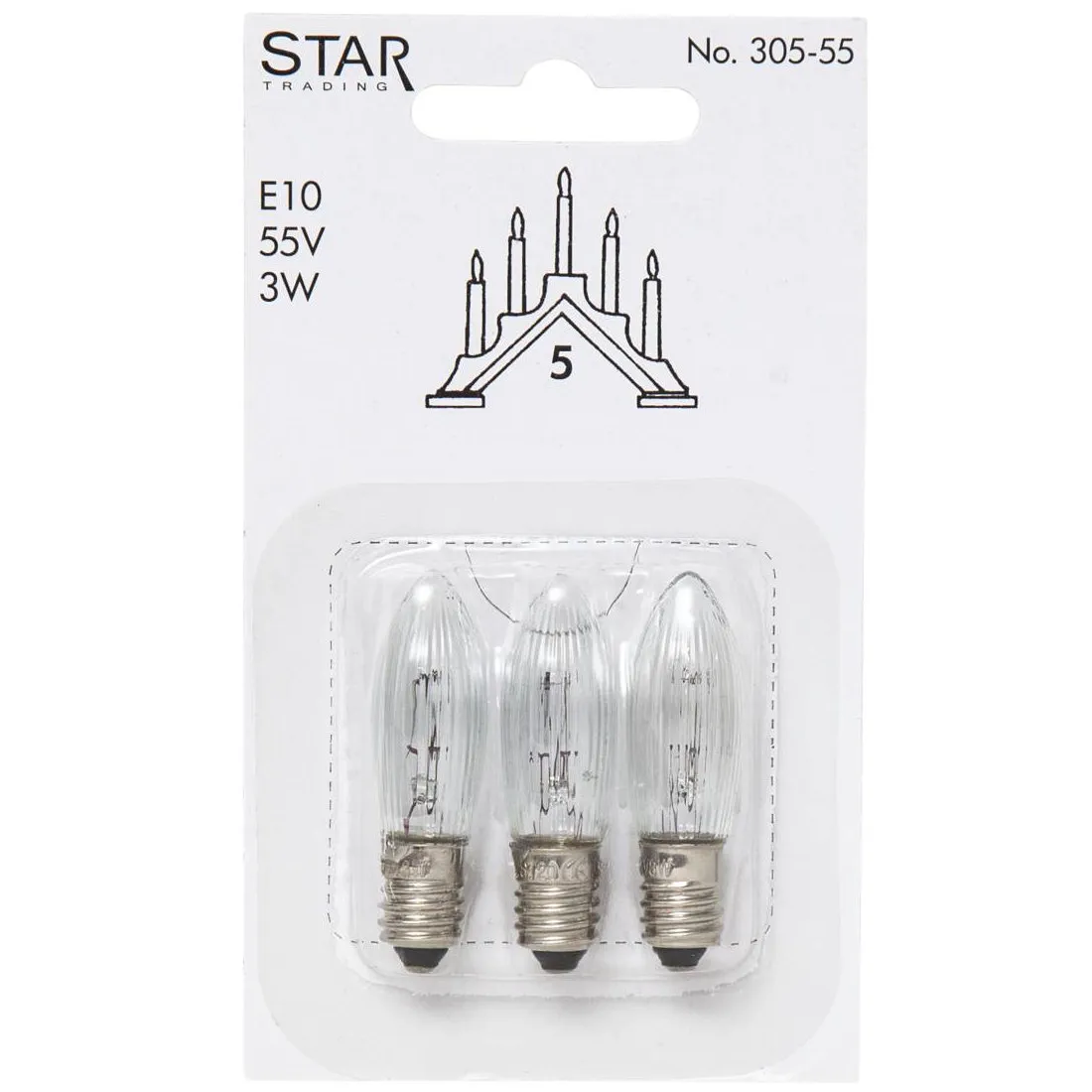 💡 Jouluvaralamput kirkas E10 3W 55V (3-pack) 💡