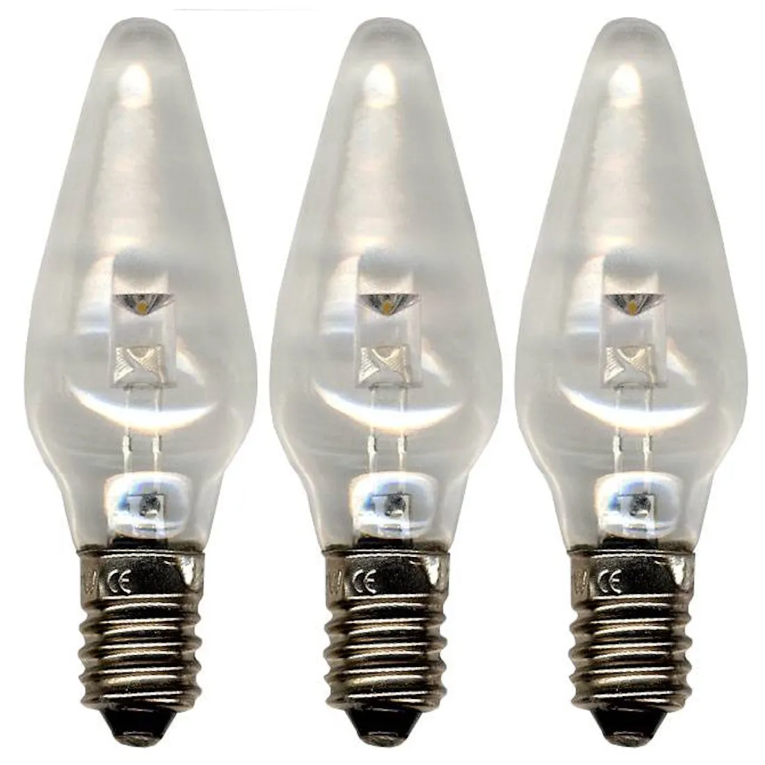 Pakkaus sisältää 3 kirkaslasista LED-varalamppua, jotka sopivat Starin 4–25 -haaraisiin kynttelikköihin, joissa on tavallinen seinäpistoke.