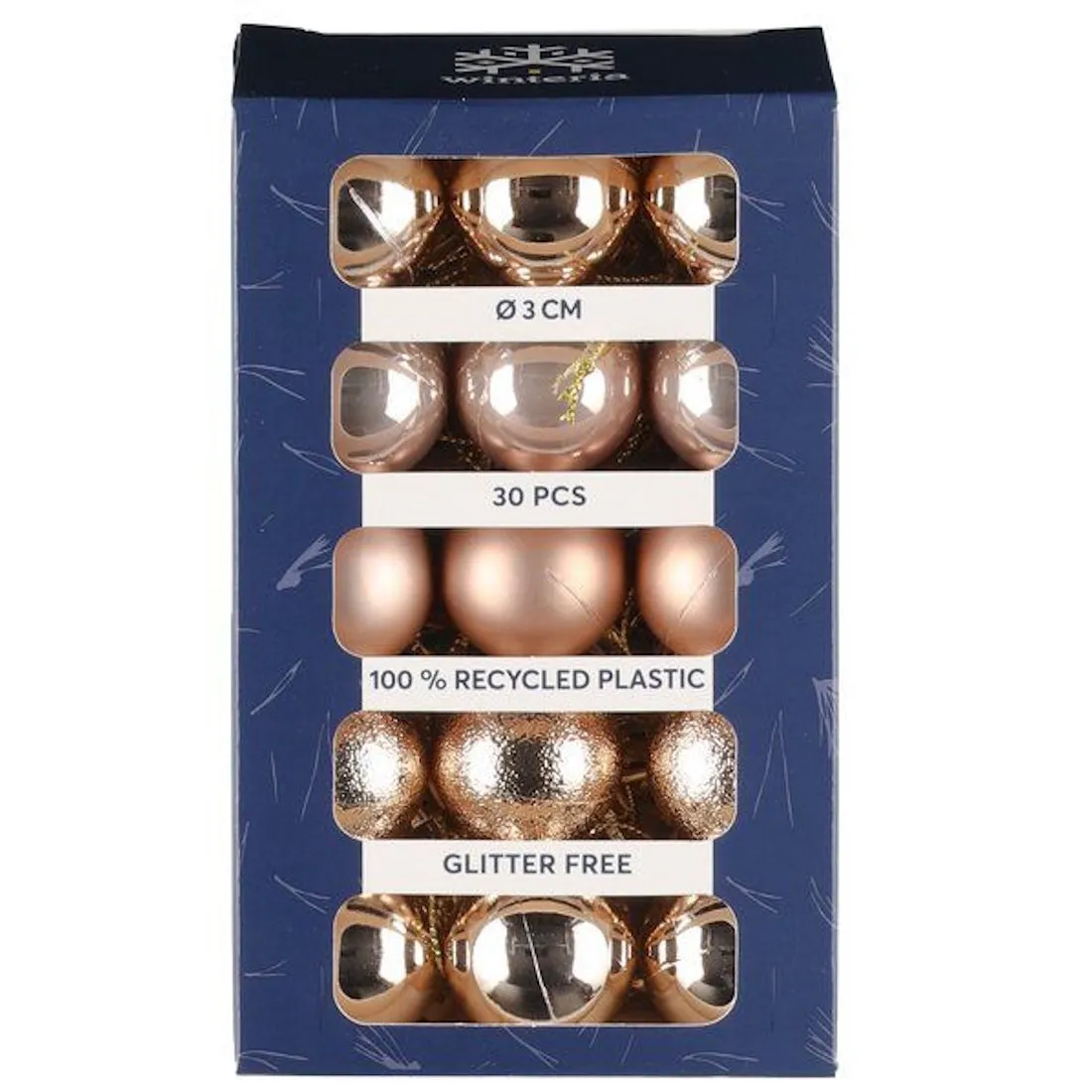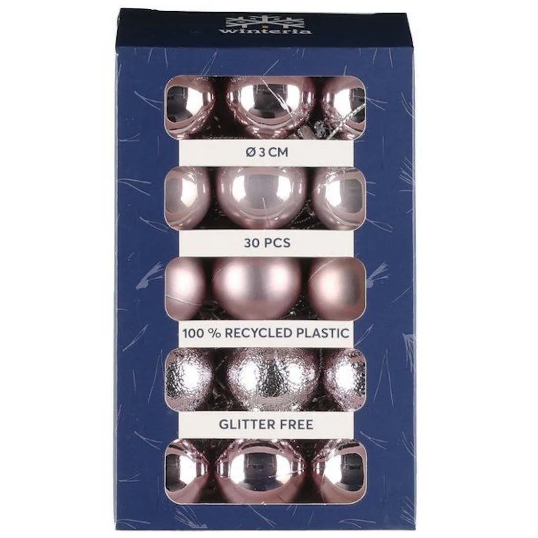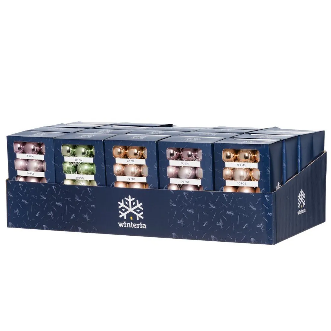 Winteria Kuusenpallo -lajitelma sisältää 30 kaunista koristetta, jotka tuovat kuuseen upeaa säihkettä ja juhlan tunnelmaa.
