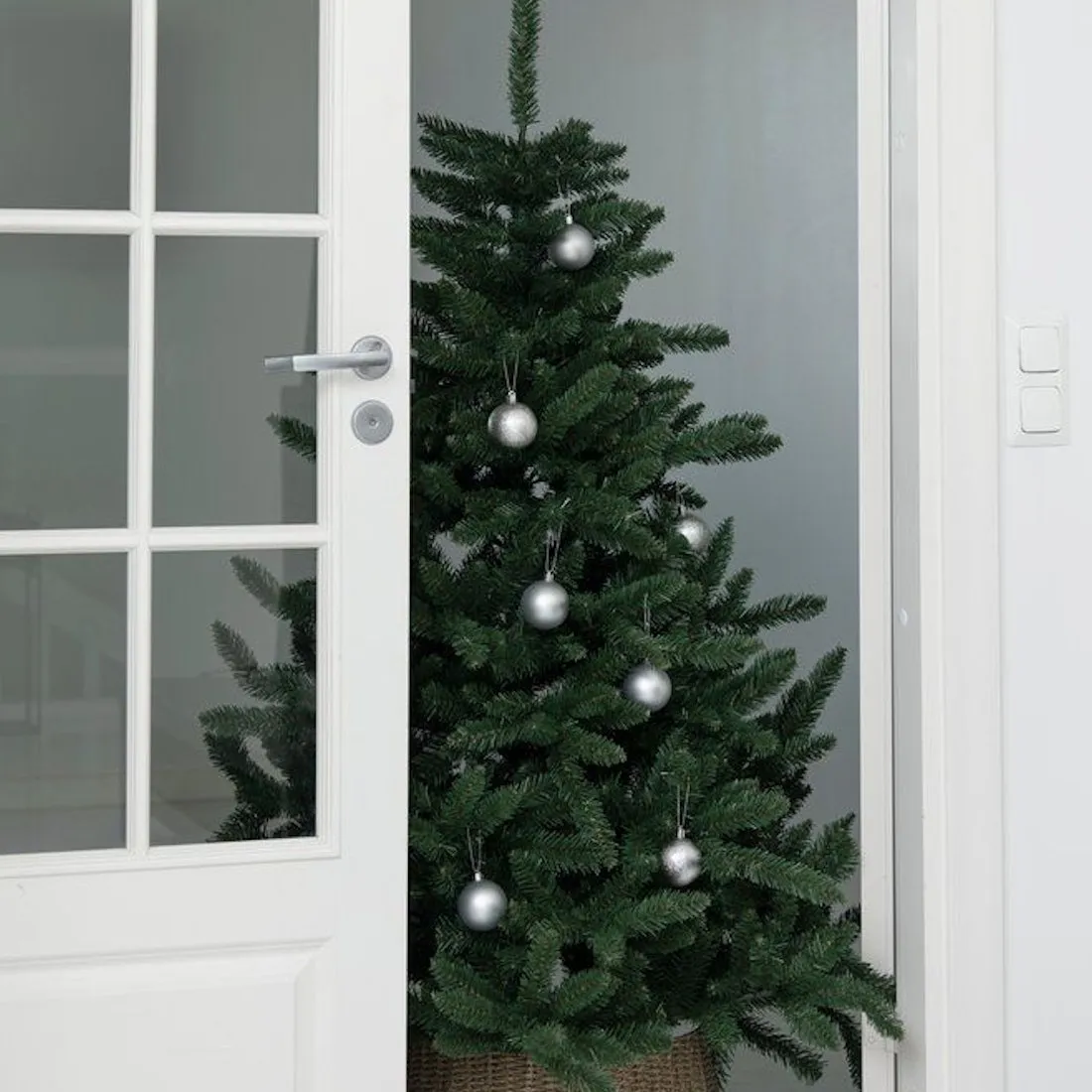 Winteria Kuusenpallo Hopea Mix tuo joulukuuseen klassista eleganssia ja juhlan hehkua.