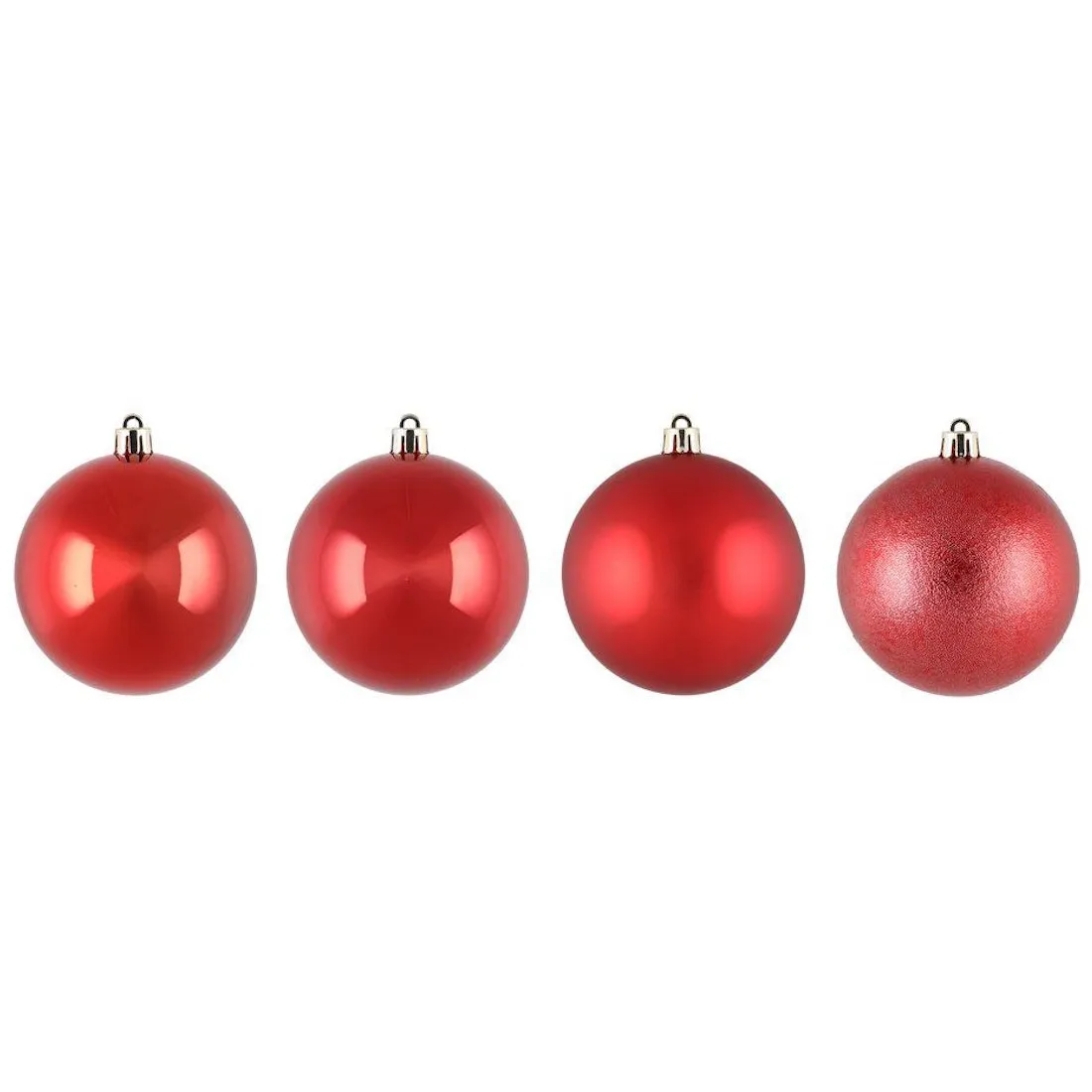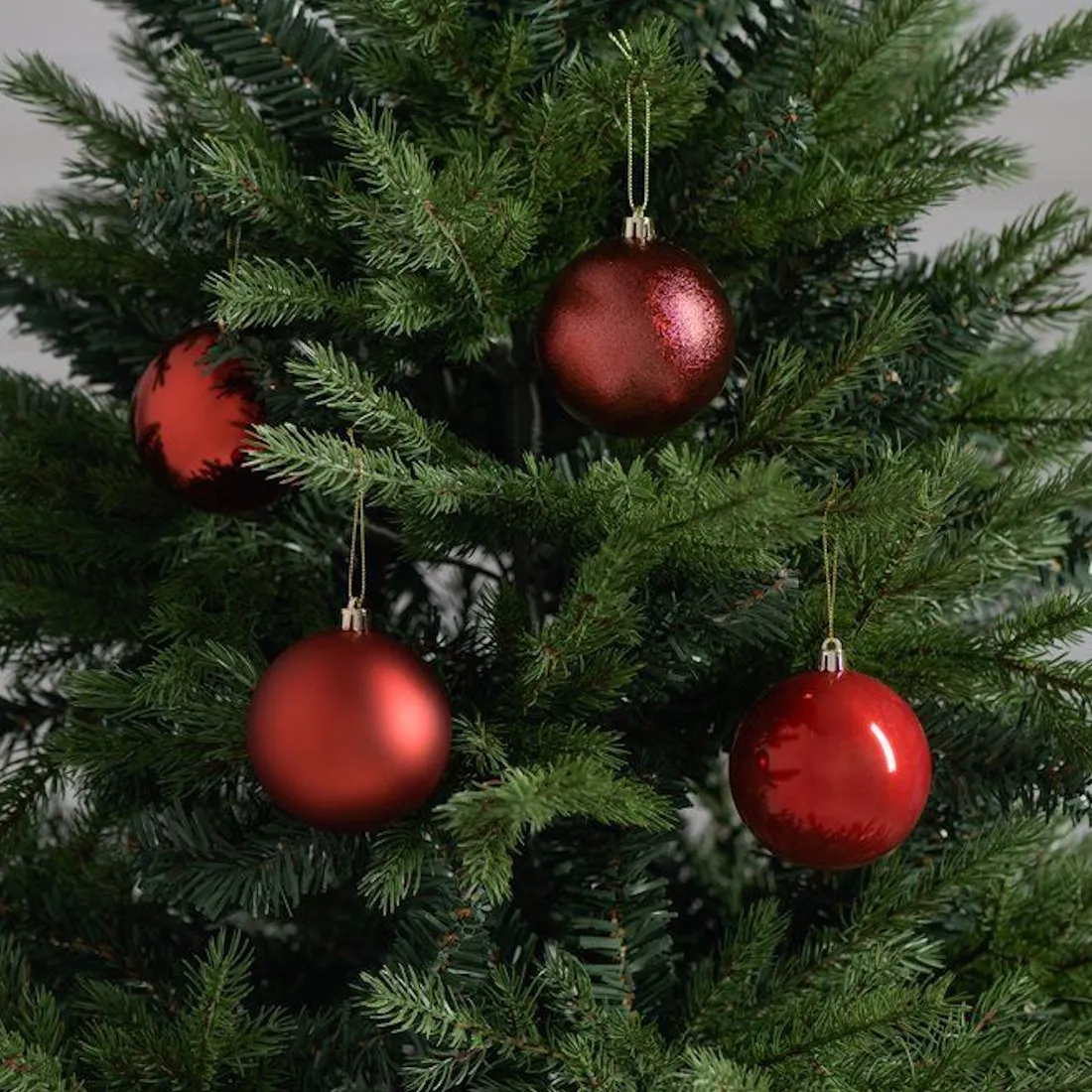 Punasävyiset pallot eri pintaviimeistelyillä luovat upean, eläväisen kokonaisuuden, joka sopii niin perinteiseen kuin moderniin sisustukseen.