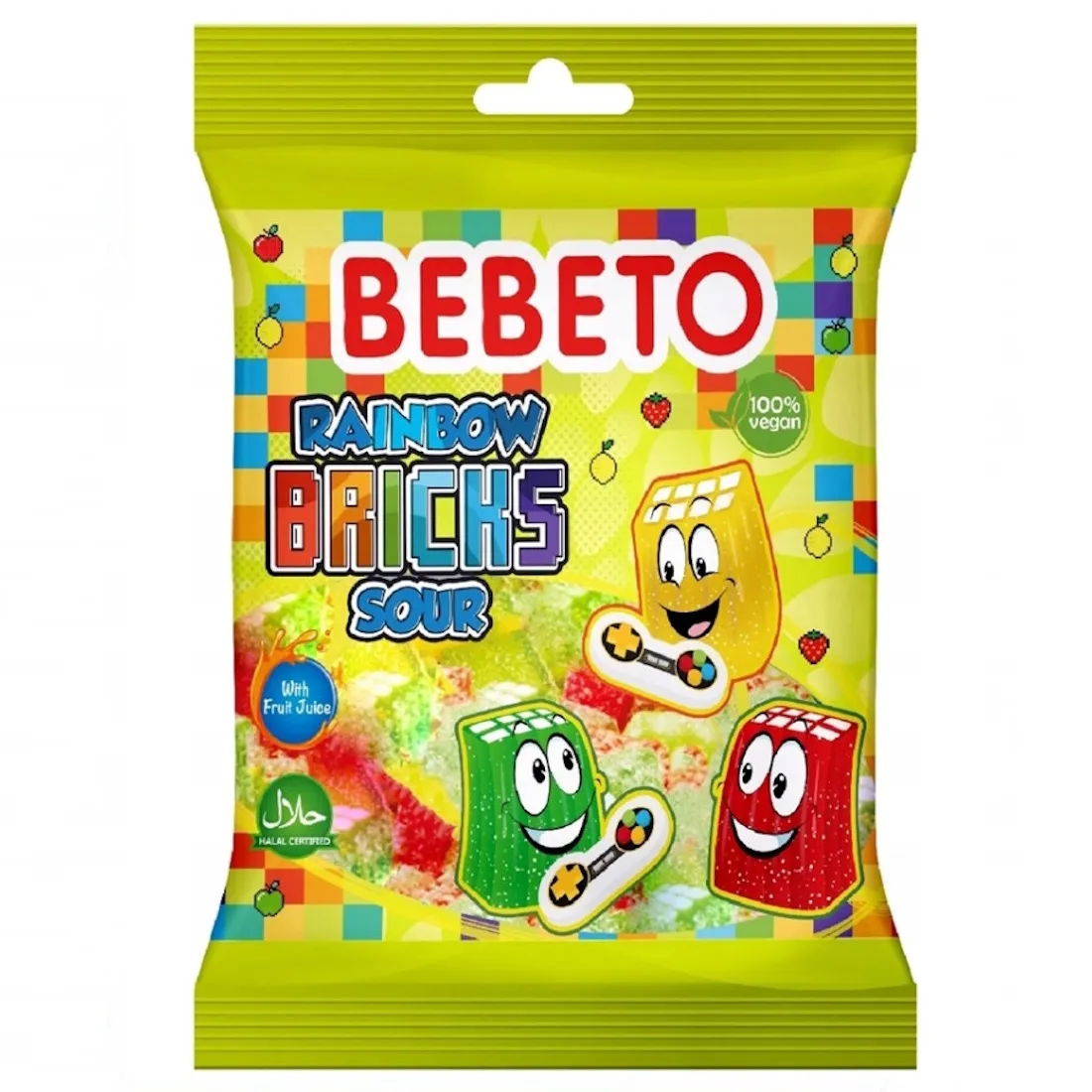 Sokeri, glukoosisiirappi, VEHNÄjauho, kasviöljy (palmu), happo (omenahappo), omenatäysmehu tiivisteestä, happamuudensäätöaine (sitruunahappo), kosteudensäilyttäjä (sorbitoli), aromit, modifioitu maissitärkkelys, emulgointiaine (rasvahappojen mono- ja diglyseridit), väriaine (Brilliant Blue).