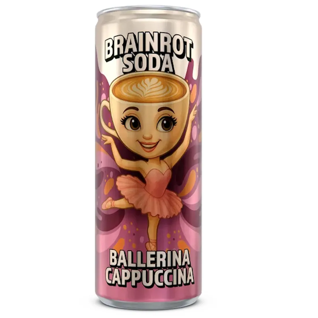 Brainrot Soda Ballerina Cappuccina on persikan ja passionhedelmän makuinen virvoitusjuoma, joka tanssii kielelläsi! 💃🥭