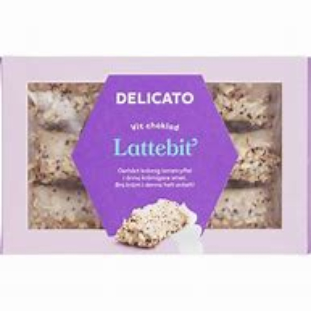 Socker, ren havre, vegetabilisk olja (palm, raps, shea, kokos, solros), vatten, kakaopulver, FETTFRI MJÖLKPULVER, MJÖLKPULVER, kakaosmör, salt, emulgeringsmedel (sojalecitin, solroslecitin, grönsak E471), konserveringsmedel (kaliumsorbat), LAKTOS, färg (sockerfärg), kaffe, arom (t.ex. mocka), glukossirap, ytbehandling (schellack, bivax).