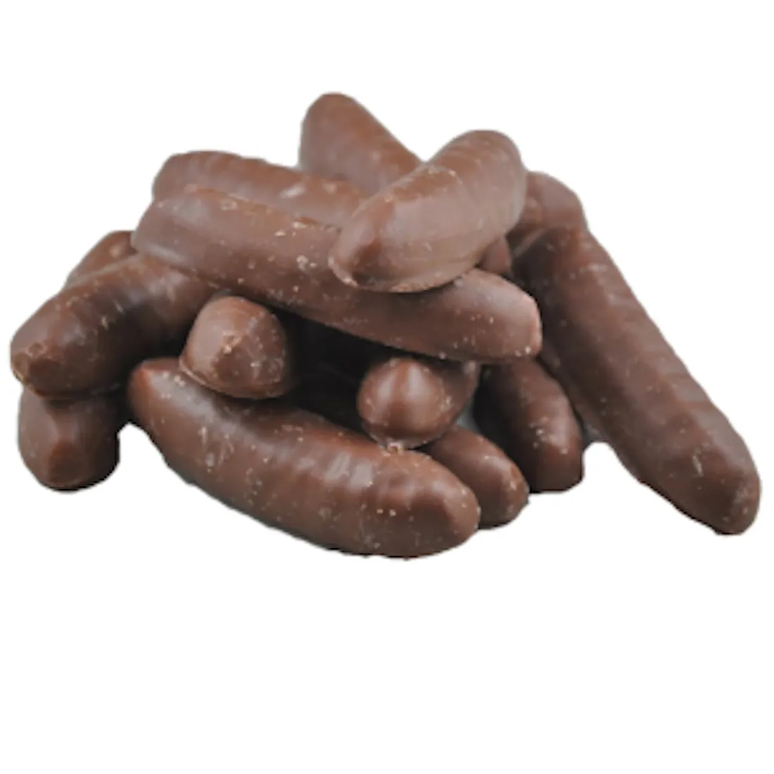 Socker, glukos-fruktossirap, vatten, fullhärdade vegetabiliska oljor (palmkärn, kokos, palm), fuktighetsbevarande medel (sorbitol), gelatin, VASSLEPULVER (från MJÖLK), fettreducerat kakaopulver, SKUMMJÖLKSPULVER, emulgeringsmedel (SOJALECITIN, E492), aromämne, färgämne (E100).