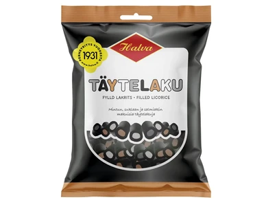Sokeri, glukoosisiirappi, happamuudensäätöaine (sitruunahappo), ammoniumkloridi, lakritsijauhe, aromi, väriaine (mustaporkkanatiiviste).