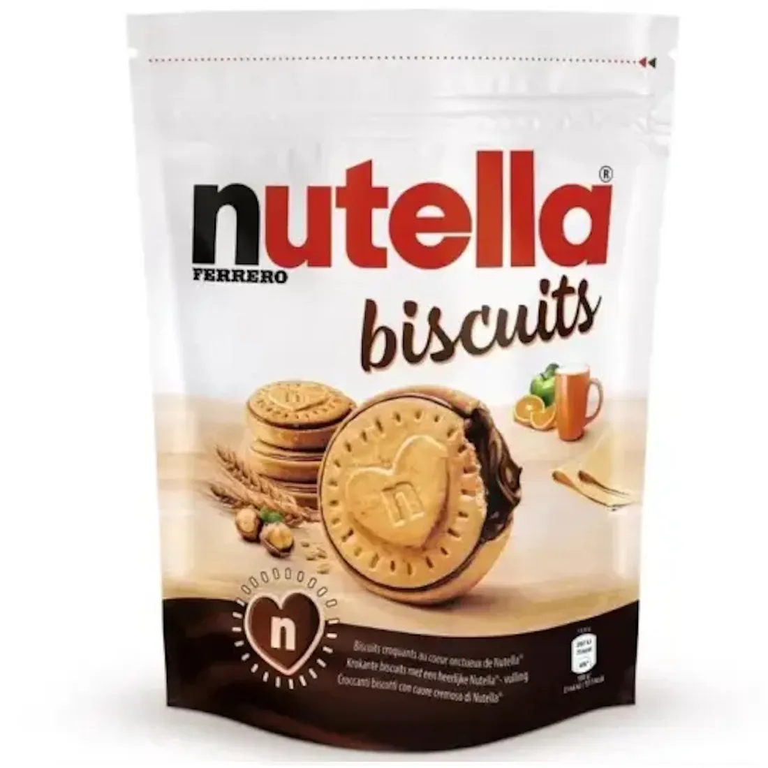 Nutella Biscuits ovat rapeita keksejä, joissa on täyteläinen Nutella-täyte. Jokainen keksi tarjoaa täydellisen yhdistelmän rapeutta ja pehmeän täyteläistä Nutellan makua, tehden niistä vastustamattoman herkun kaikille suklaan ystäville.