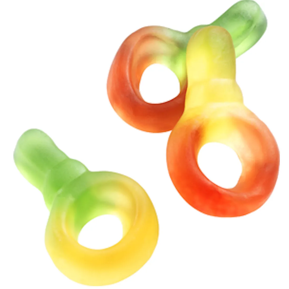 Glukossirap; socker; gelatin; druvsocker; syra: citronsyra; frukt- och plantkoncentrat: spirulina, safflor, äpple, citron, rättika, sötpotatis, morot, svarta vinbär, hibiskus; invertsockersirap; arom; palmolja; ytbehandlingsmedel: bivax vitt och gult, karnaubavax.