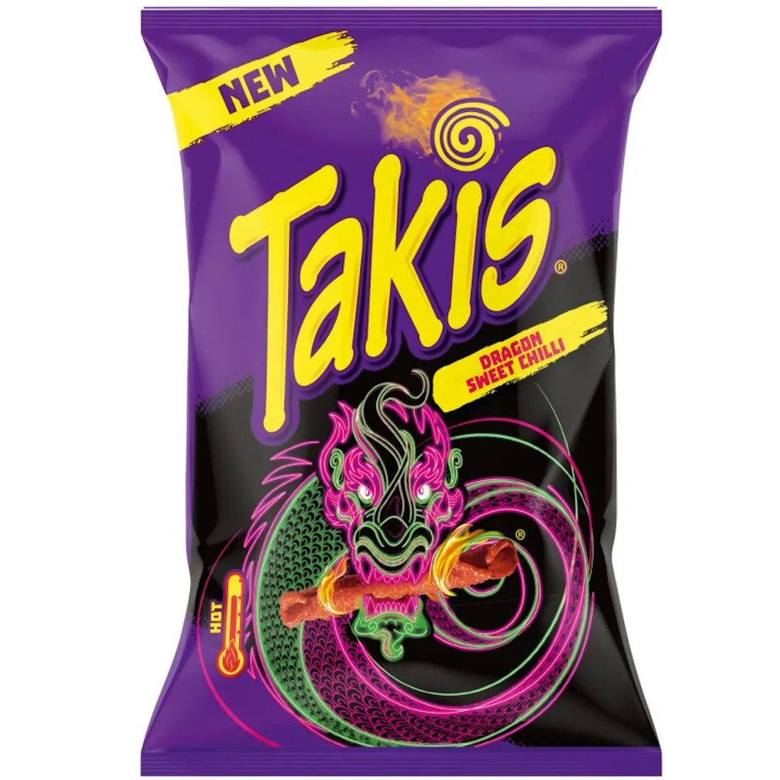 Takis Dragon Sweet Chili tarjoaa makean ja lempeästi tulisen makuelämyksen, jossa yhdistyvät chiliin vivahtava potku ja miellyttävä makeus. Nämä rullatut ja erittäin rapeat maissilastut ovat täydellinen valinta sinulle, joka haluat mausteisuutta, mutta hieman pehmeämmällä ja aromikkaammalla twistillä kuin Takis-sarjan tulisimmissa mauissa.