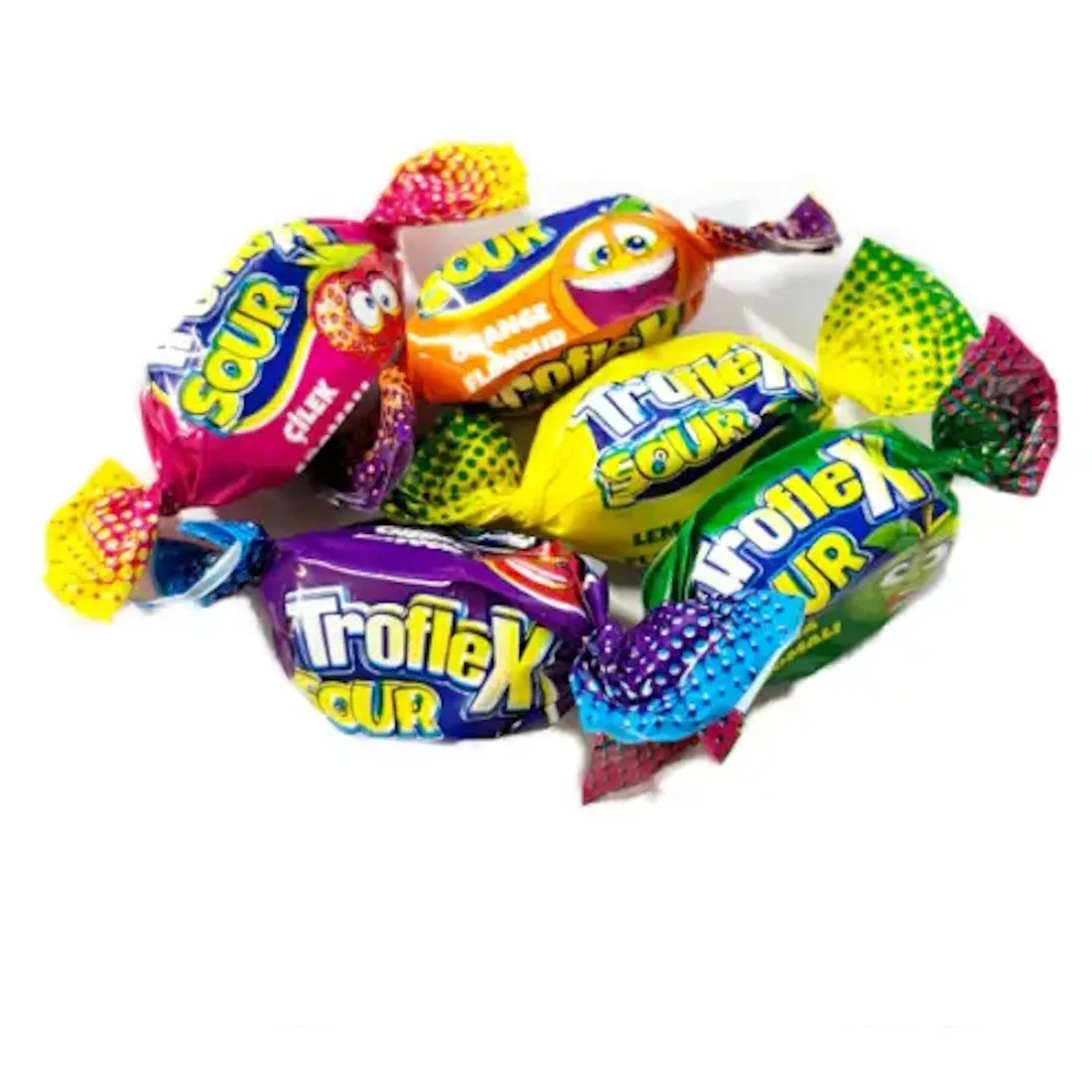 Maista Troflex Sur Fruktkola – ihastuttava kohtaaminen kermaisen toffeen ja virkistävän kirpeyden välillä! Nämä värikkäät, sitkeät makeiset tarjoavat jännittävän yhdistelmän, jossa pehmeä toffeerakenne kohtaa kihelmöivän happaman hedelmänmaun, joka herättää makuhermot. Täydellisiä makeisten ystäville, jotka etsivät yllättävää twistiä klassiseen suosikkiin. Vastustamaton yhdistelmä makeaa ja hapanta, jota on vaikea lopettaa syömästä.