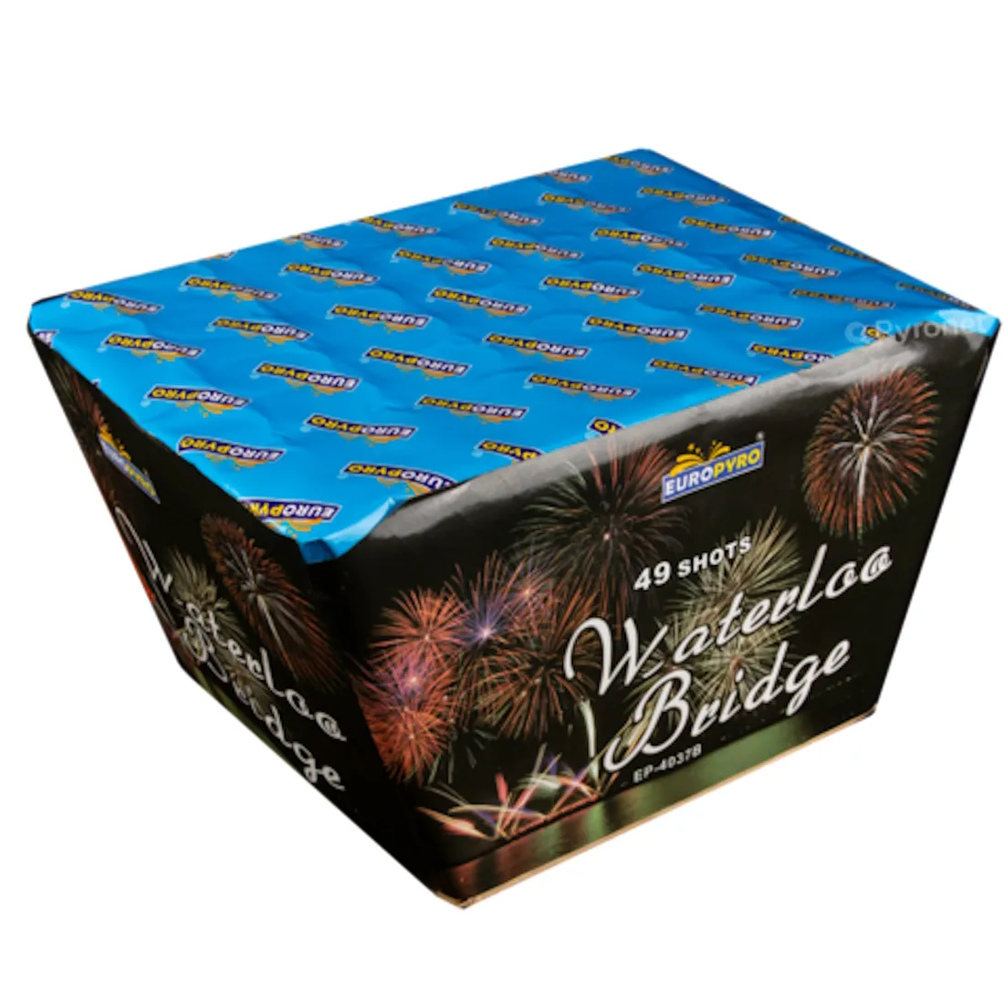 Waterloo Bridge on näyttävä ja tehokas viuhkapata, joka täyttää taivaan leveällä ja vaikuttavalla ilotulitusesityksellä. Runsaat laukaukset ja viuhkamainen ampumakulma luovat suuren ja dynaamisen kokonaisuuden, joka sopii erinomaisesti juhlan huipennukseksi tai illan pääesitykseksi.