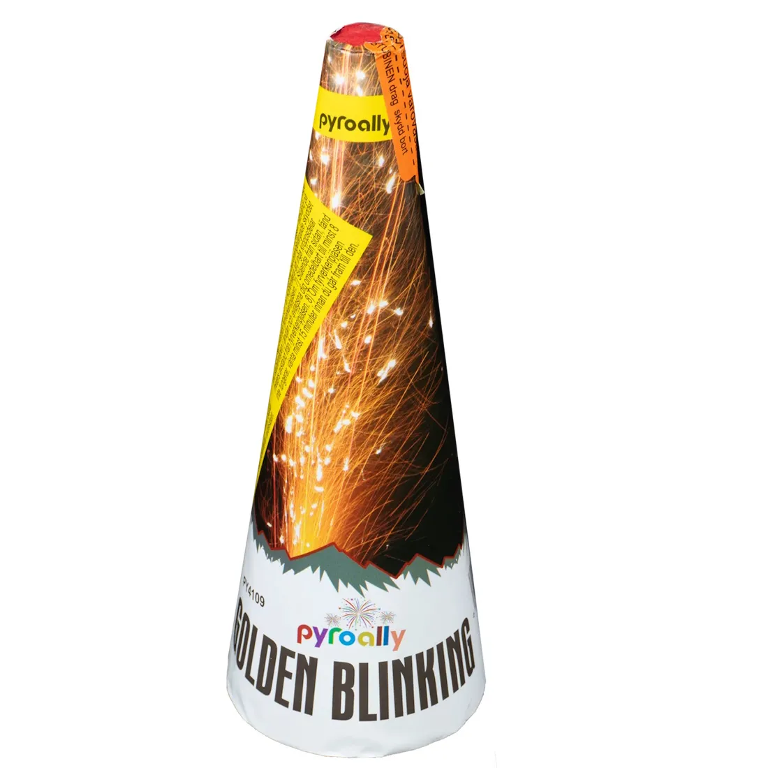 Golden Blinking Jättisuihku on klassinen ja näyttävä ilotulitesuihku, joka tarjoaa kauniin nousevan kultasuihkun ja päättyy värikkääseen rätinään. Tämä suihku luo tunnelmaa ilman kovaa pauketta, joten se sopii erinomaisesti myös ympäristöihin, joissa on lemmikkejä tai herkkiä katsojia.