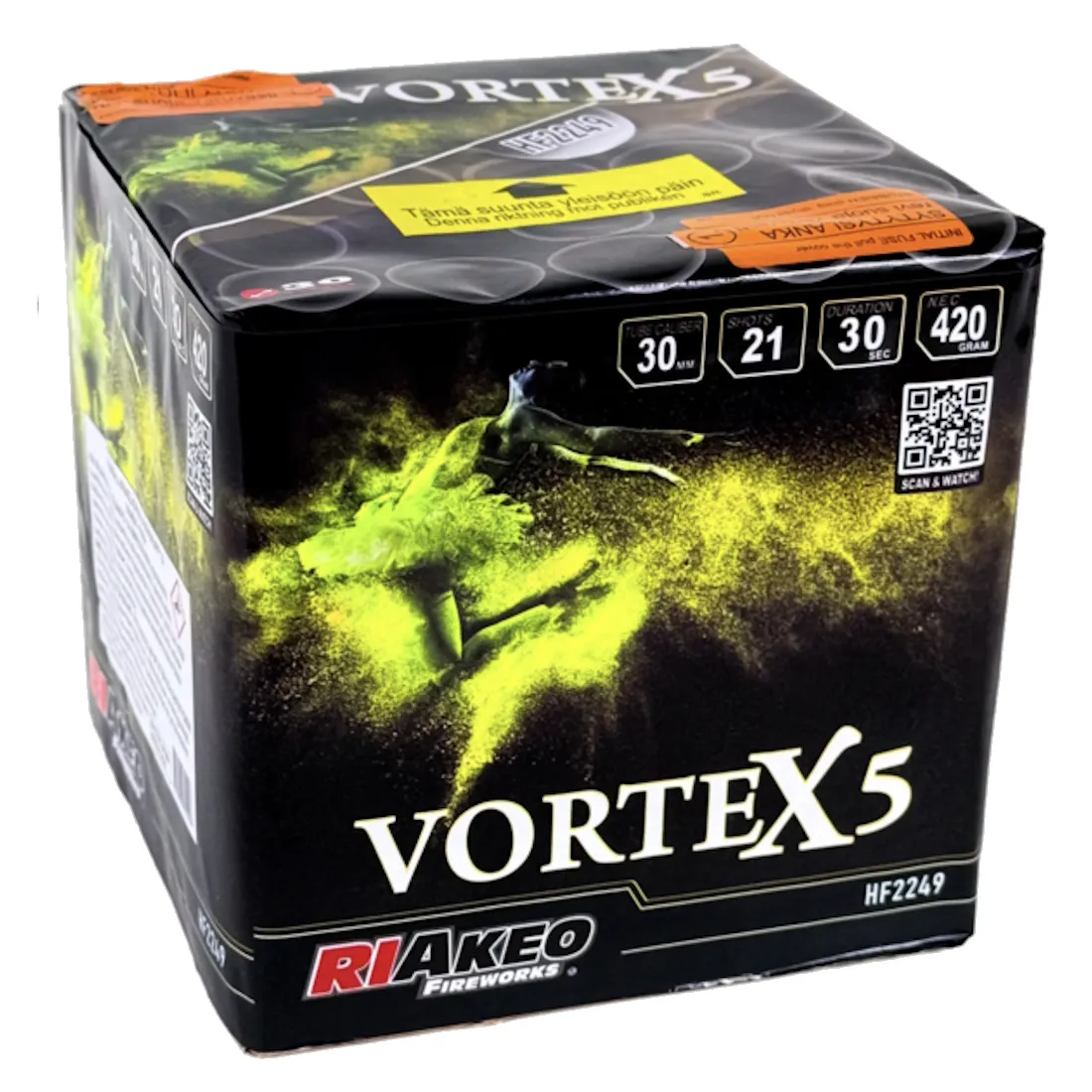 Suuri 30 mm kaliberi ja runsas 420 gramman pyromassa takaavat voimakkaat ja näyttävät efektit, jotka täyttävät taivaan kunnolla. MVP Vortex 5 on erinomainen valinta, kun haluat maksimaalista näyttävyyttä ilman turhaa hintalappua.