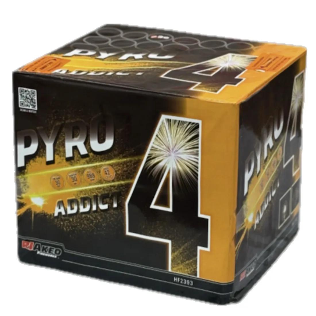 PYRO ADDICT 4 on tyylikäs ja voimakas pata todellisille pyrotekniikan ystäville. Kauniisti suoraan ampuva kokonaisuus yhdistää kirkkaat värit, runsaan kullan ja pitkään palavat, suuret värikomeetat. Näyttävä kokonaisuus huipentuu upeaan finaaliin, joka tekee tästä padasta aidosti koukuttavan elämyksen.