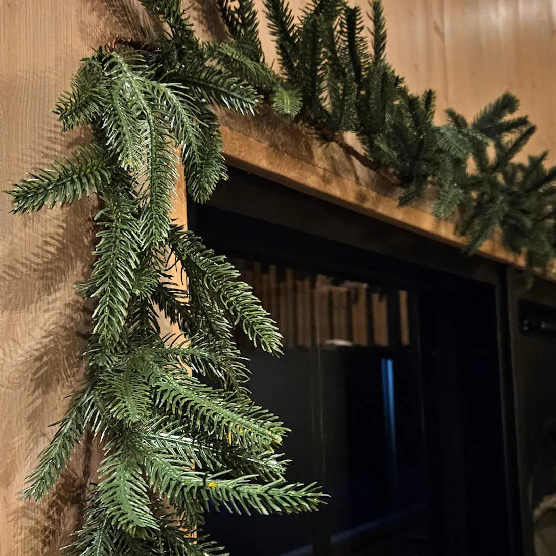 Girlangen har 66 grenspetsar, vilket gör den tät och levande i sitt utseende. Stommen av ståltråd håller formen bra och gör det möjligt att böja girlangen efter önskemål – perfekt för dörrar, räcken, trappor eller fönster.