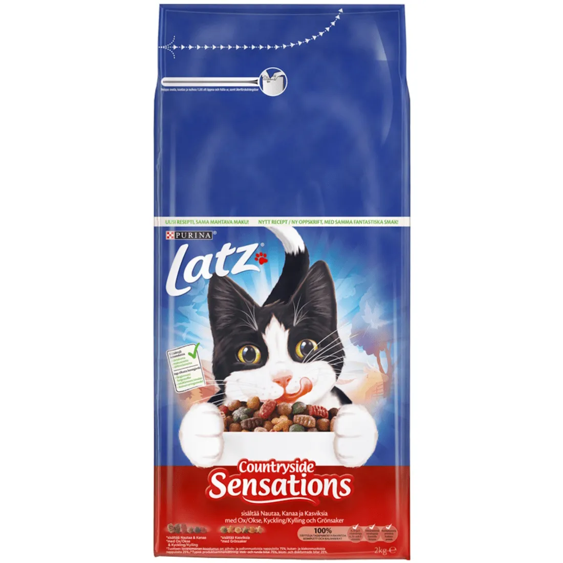 Latz Sensations Kött 2 kg är ett helfoder som ger din katt en läcker och näringsrik måltid varje dag. Maten i Countryside Sensations-serien kombinerar oemotståndliga smaker, krispiga former och grönsaker till en varierad helhet.