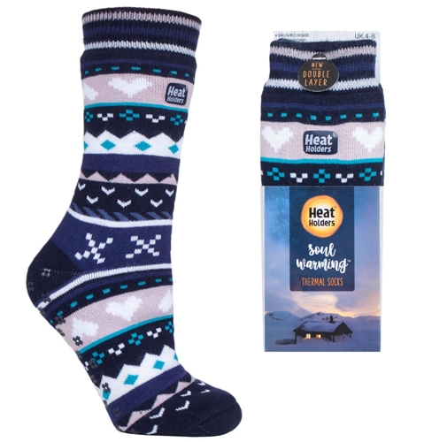 Mycket varma och mjuka HEAT HOLDERS innetofflor med dubbellagers patenterad konstruktion och borstat foder. Strumporna har halkskyddande sula för att motverka att du halkar. Den nya förbättrade förpackningen står stadigt på hyllan. Tillverkade av akryl, polyester, nylon och elastan. Tvättas i 40 grader, storlek 37–42.