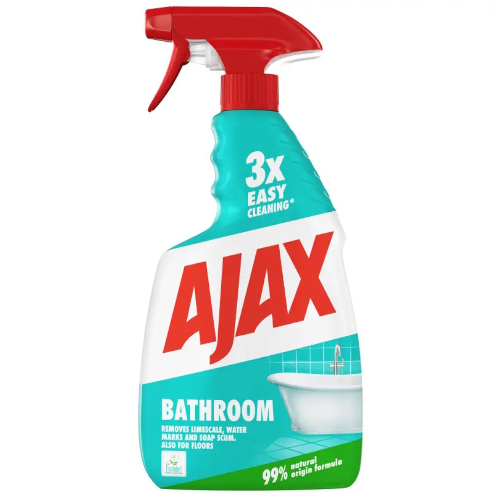 Ajax Bathroom-rengöringsspray håller ditt badrum skinande rent. Den tar effektivt bort kalkavlagringar och tvåltrester. Den här veganska rengöringsprodukten består av 99 % naturliga ingredienser och är 96 % biologiskt nedbrytbar. Dessutom är sprayflaskan tillverkad av återvunnen plast som du också kan återvinna – även munstycket. Produkten innehåller inga ingredienser av animaliskt ursprung.