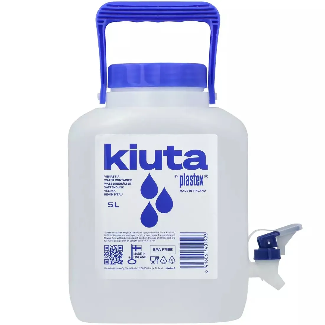 En högkvalitativ, inhemsk och säker vattenbehållare med vridkran. Modellen passar utmärkt i kylskåpet och i mindre utrymmen tack vare sin storlek. Tack vare locket håller du getingar och andra insekter borta från drycken. Vattenbehållaren är idealisk för stugan, båten, camping, husbil, på arbetsplatsen eller för att transportera dricksvatten vid vattenavbrott. Förutom vatten passar den också bra till exempelvis saft, hemmagjort vin eller svagdricka. Kärlet är tillverkat i livsmedelsgodkänd plast och är säkert att använda. Den är lätt att diska tack vare den stora öppningen och enkel att bära i handtaget.
