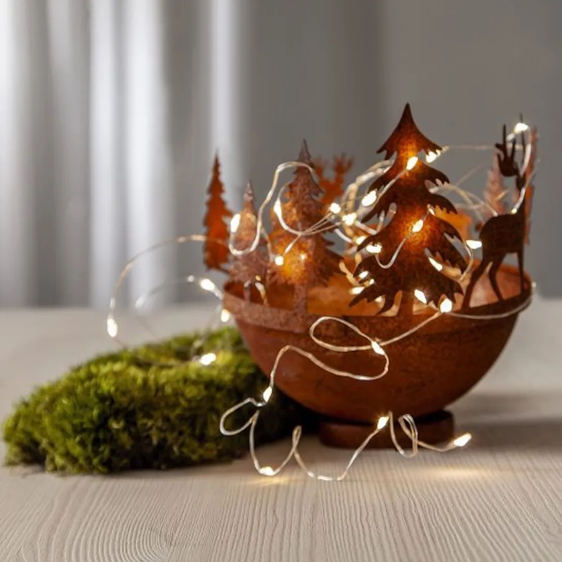 Den tunna silverfärgade kabeln gör ljusslingan diskret och stilren. Den smarta timerfunktionen gör att ljusslingan lyser i 6 timmar och tänds automatiskt igen vid samma tid nästa dag. Den fasta LED-konstruktionen ger lång och bekymmersfri användning.