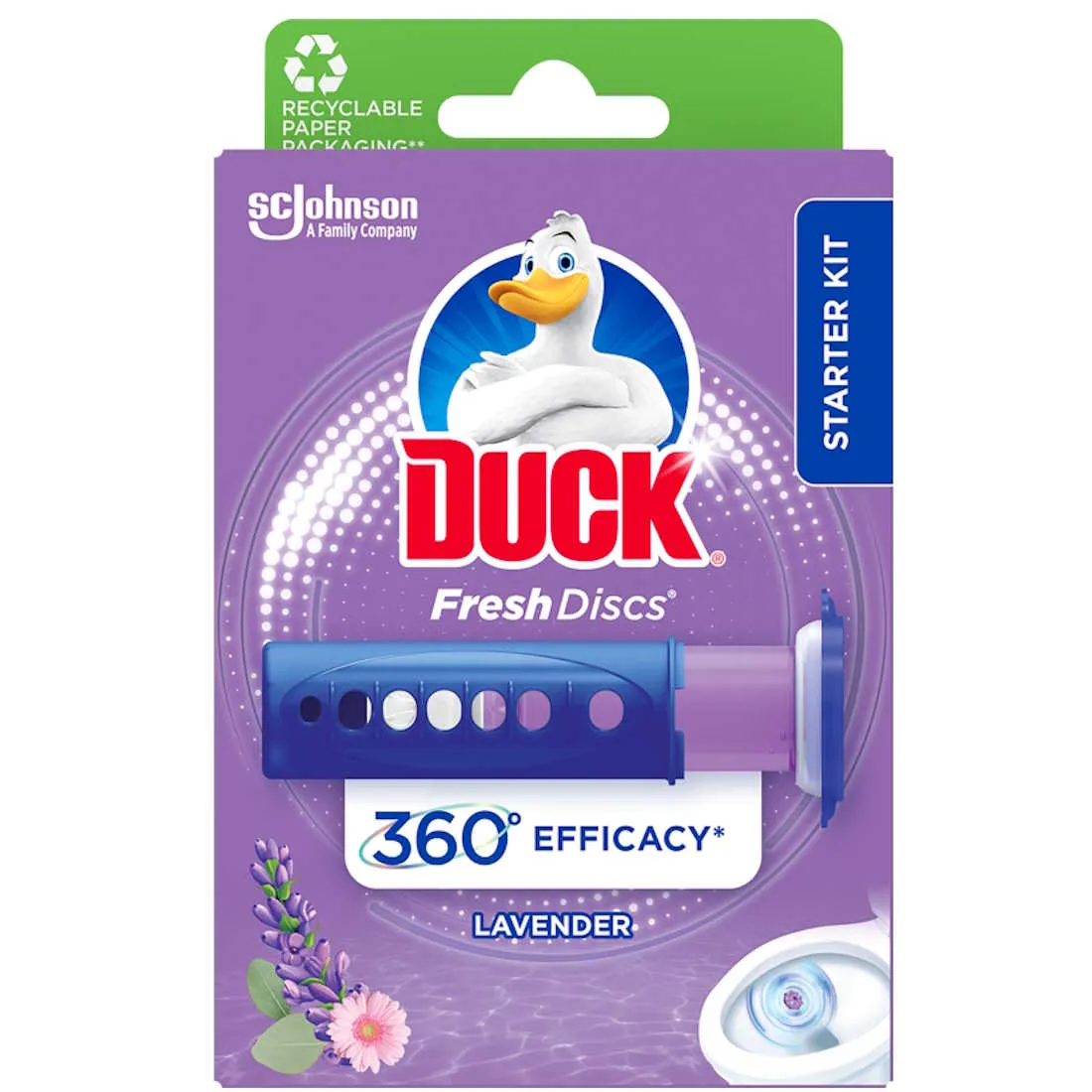 Duck Fresh Discs är en hygienisk toalettfräschare utan hållare som förhindrar bakteriespridning. Den doserar geléliknande skivor på insidan av toalettstolen, vilka fräschar upp och rengör vid varje spolning. Produkten motverkar även kalkbildning och håller toalettutrymmet fräscht och väldoftande under lång tid.
