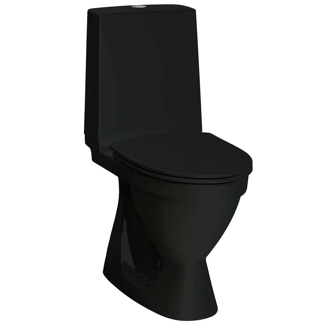 Rigo WC-stol är en modern och elegant golvstående toalett som passar utmärkt i nutida badrum och WC-utrymmen. Den mattsvarta finishen ger rummet ett stilfullt och tidlöst utseende.