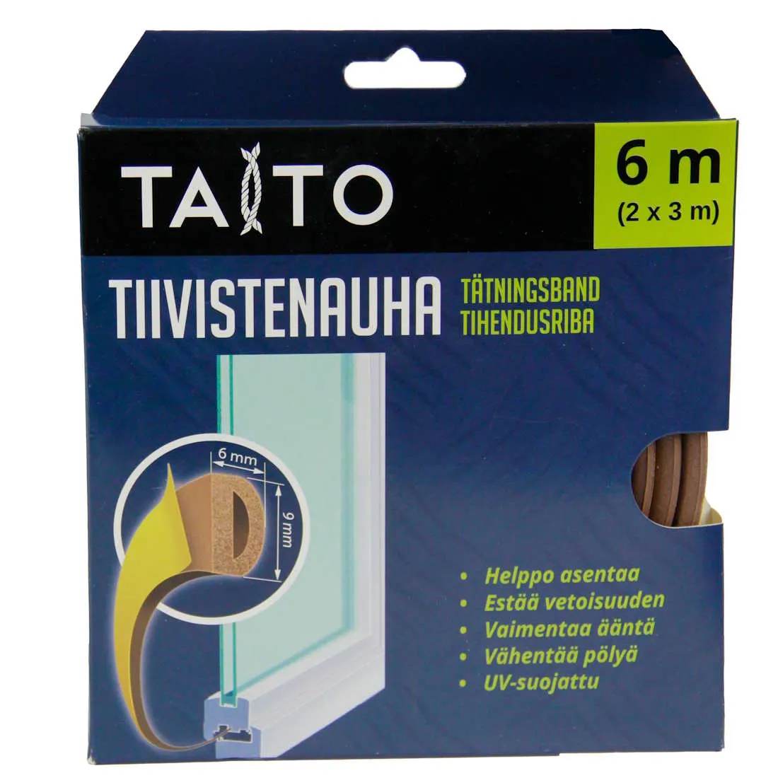 TAITO tätningslist vit D 2x3 m är en slitstark tätningslist som används särskilt för tätning av dörrar och fönster. Listen förbättrar värmeisoleringen, stoppar drag och minskar energiförbrukningen. Passar bra både i hemmet och i sommarstugan, och är enkel och snabb att installera.