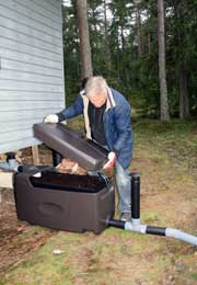 - suodatinmateriaali on noin 5 cm:ä irti laatikon purkupäädyn aukoista