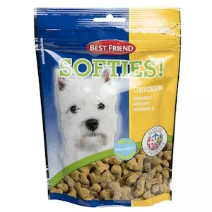 Best Friend Softies -lihaisat herkkupalat ovat pehmeitä ja vastustamattoman maukkaita makupaloja kaiken kokoisille ja -ikäisille koirille. Pehmeä koostumus tekee niistä erinomaisen valinnan koulutukseen, palkitsemiseen ja arjen hemmotteluhetkiin.