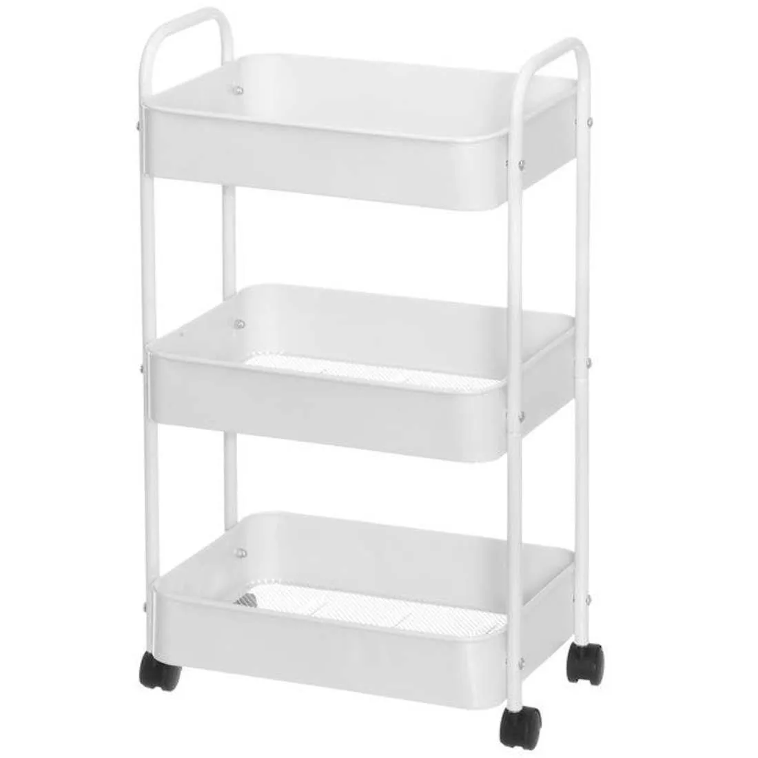 3-tasoinen korivaunu on käytännöllinen ja kompakti säilytysvaunu, joka tarjoaa liikuteltavaa säilytystilaa juuri sinne, missä sitä kulloinkin tarvitaan. Raikas valkoinen väri tuo tilaan keveyttä ja selkeyttä.
