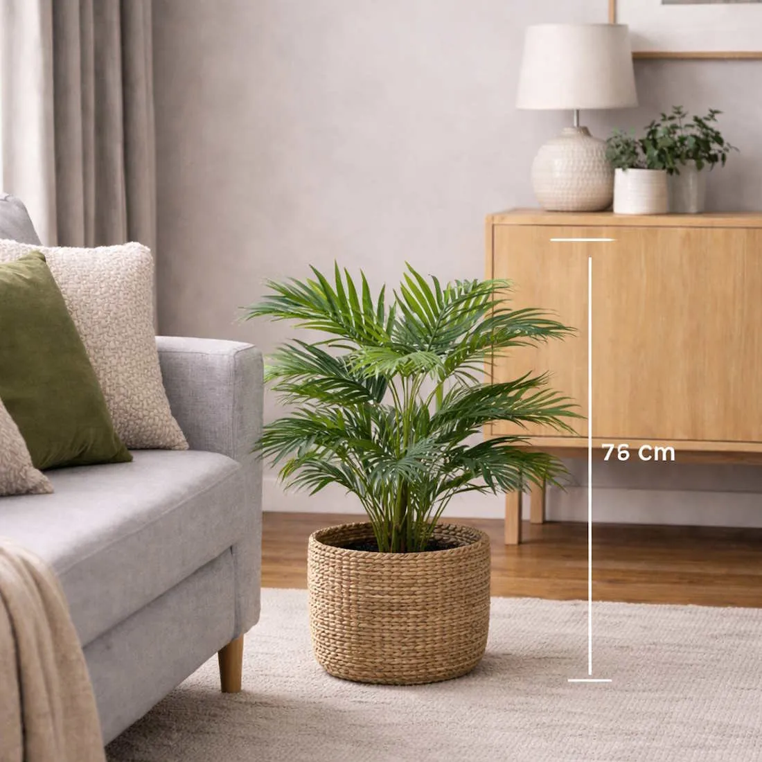 Kultapalmu ruukussa on huoleton ja nopea tapa piristää kodin, parvekkeen, pihan tai terassin ilmettä. Aidon näköinen tekokasvi tuo vehreyttä tilaan ilman kastelua tai hoitoa.