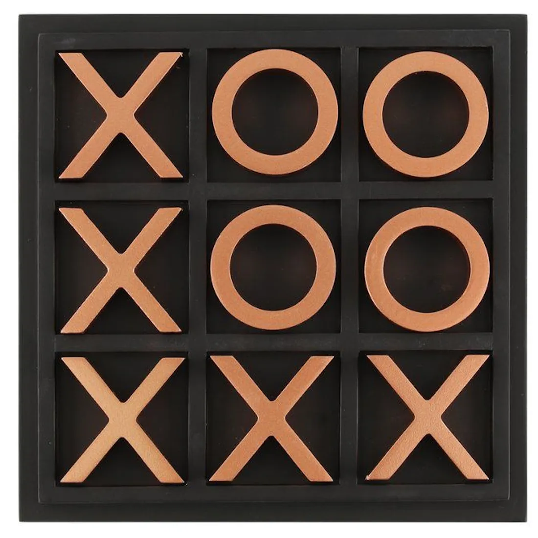 Musta pelialusta ja kullanväriset pelinappulat luovat elegantin ilmeen, joka sopii monenlaiseen sisustukseen. Koriste toimii kauniisti esimerkiksi sohvapöydällä, hyllyssä tai lahjaideana.