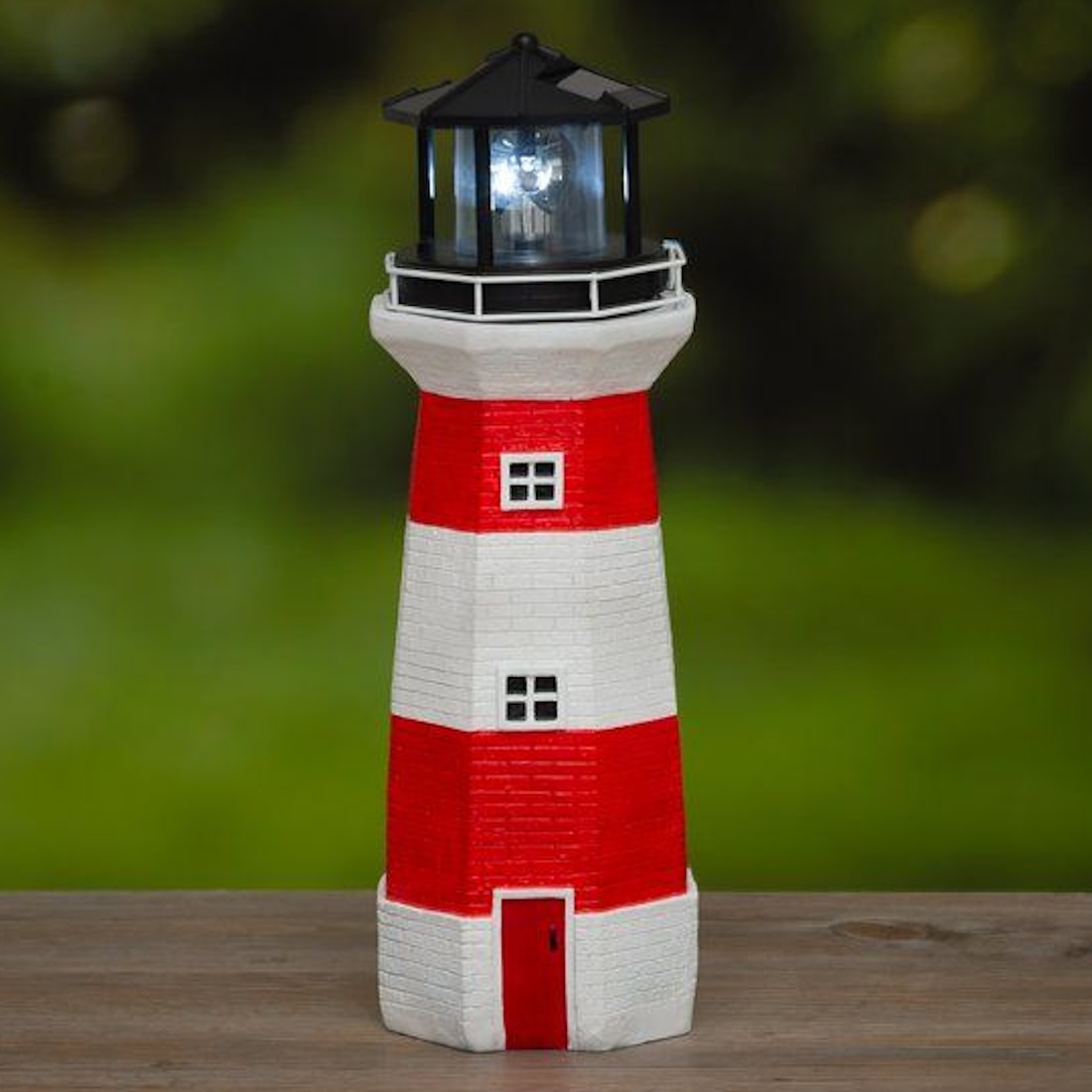 Merellinen majakkapatsas, jossa on pyörivä LED-valo (kylmä valkoinen, 0,06W, 2lm). Toimii aurinkopaneelin ja ladattavan Ni-Mh AA -akun avulla. Toiminta-aika täyteen ladattuna 6 tuntia. IP44, mitat 13x13x37 cm, paino 0,55 kg. Väri punainen/valkoinen tai vaaleanruskea/valkoinen.