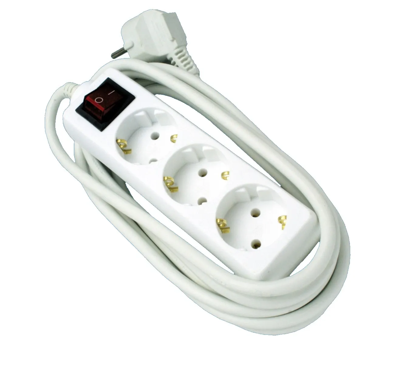 Lapsisuojalliset maadoitetut jatkojohdot on/off-kytkimellä ja merkkivalolla.