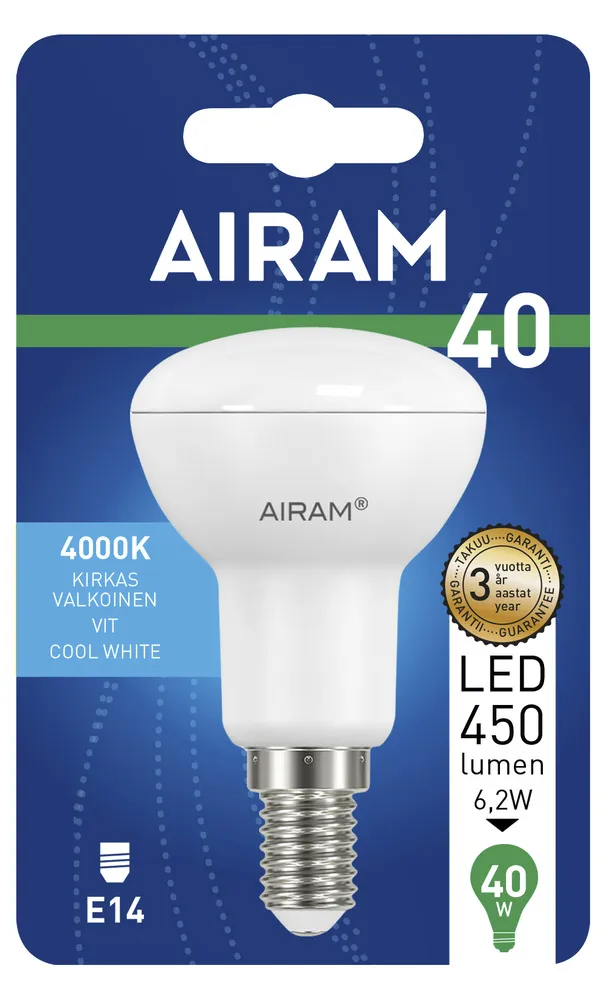Opaali R50 LED-lamppu (4W, E14) tarjoaa 480 lumenin valon, hyvä värintoistoindeksi CRI > 80 ja 4000K värilämpötilan. Polttoikä on 15 000 tuntia, toimintalämpötila -30 °C – +40 °C. Lamppu ei sisällä elohopeaa, ei UV- eikä IR-säteilyä. Kolmen vuoden takuu.