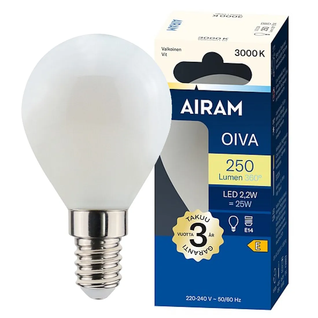 Airam Oiva LED-lamppu E14 2,2W 3000K 250 lm