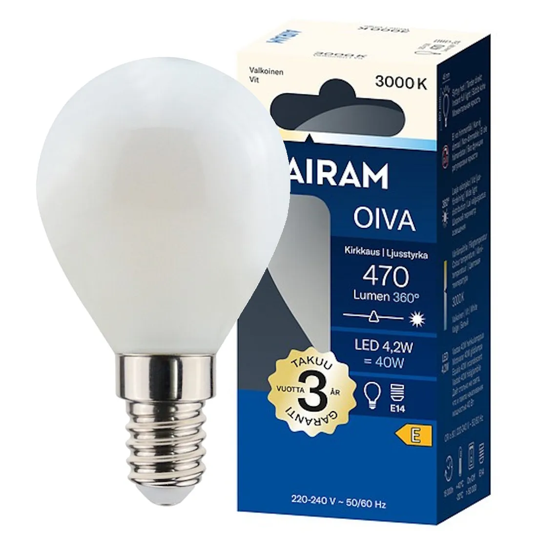 Airam Oiva LED-lamppu E14 4,2W 3000K 470 lm