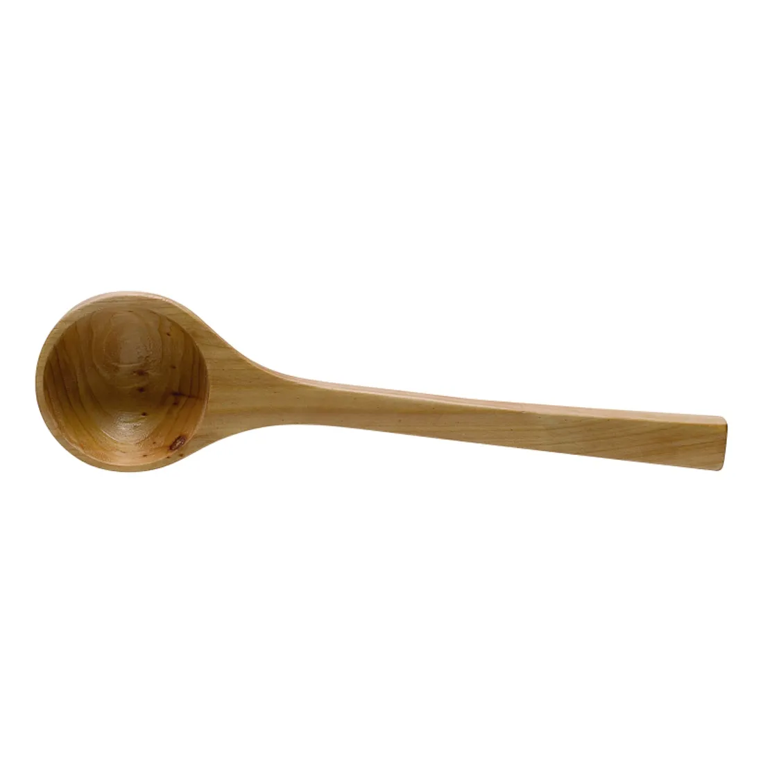 Tummasta puusta valmistettu kauha istuu kauniisti saunan sisustukseen ja on mukava kädessä käytössä.