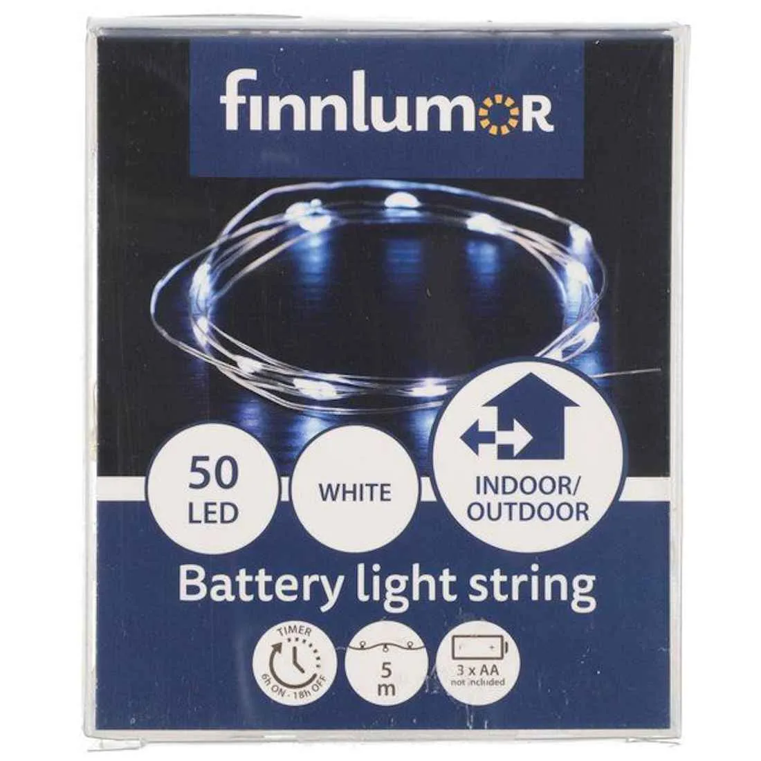 Finnlumor Paristo Ulkovalosarja Kylmä Valkoinen Ajastin 5m 50 Micro Led