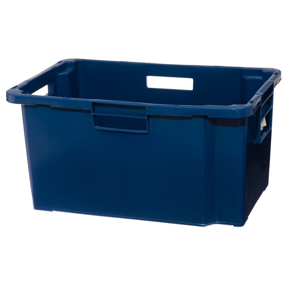 Sininen, elintarvikehyväksytty varastolaatikko on pinottava ja soveltuu turvallisesti elintarvikkeiden säilytykseen. Käytännöllinen ratkaisu varastointitarpeisiin esimerkiksi elintarvikealalla tai muissa varastoinnissa, joissa puhtausvaatimukset ovat tärkeitä. Pinottavuus säästää tilaa ja laatikon materiaalit täyttävät elintarviketurvallisuuden vaatimukset.