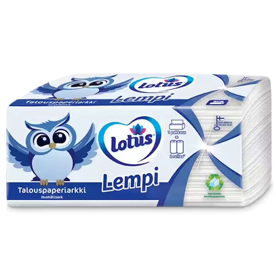 Luonnonystävä Käsipyyhepaperin uudistettu pakkaus - Lotus Lempi Talouspaperiarkit – Kierrätyskuidusta