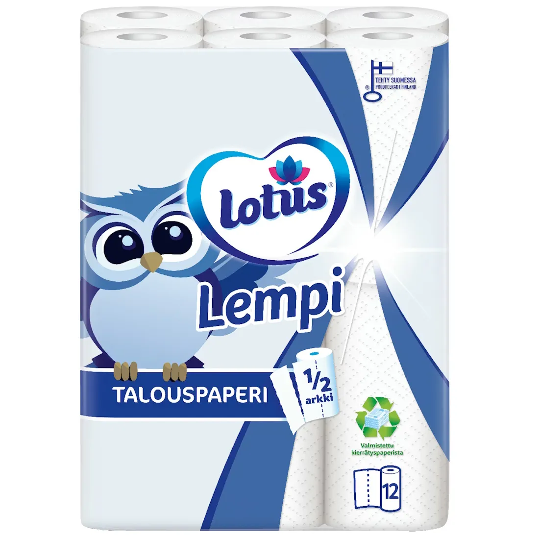 Lotus Lempi talouspaperi on viisas valinta imukykyä, vahvuutta ja riittoisaa Lotus-laatua. Lotus Lempi talouspaperi valmistetaan kierrätyspaperista Nokian paperitehtaalla FSC-sertifioidusta kuidusta. Lotus Lempi talouspaperi on sävyltään hieman tummempaa kuin uudesta kuidusta valmistettu paperi, mutta se on kestävää ja vahvaa, kuten muutkin Lotus-pehmopaperit. Rullat on pakattu kierrätettävään pakkaukseen, joka sisältää 50% kierrätysmuovia.