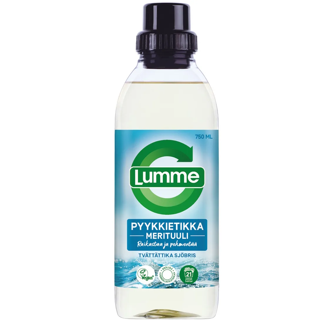 Lumme pyykkietikka Merituuli raikastaa ja pehmentää pyykin tehokkaasti. Se neutralisoi epämiellyttäviä hajuja ja jättää pyykkiin miellyttävän, raikkaan merituulen tuoksun.