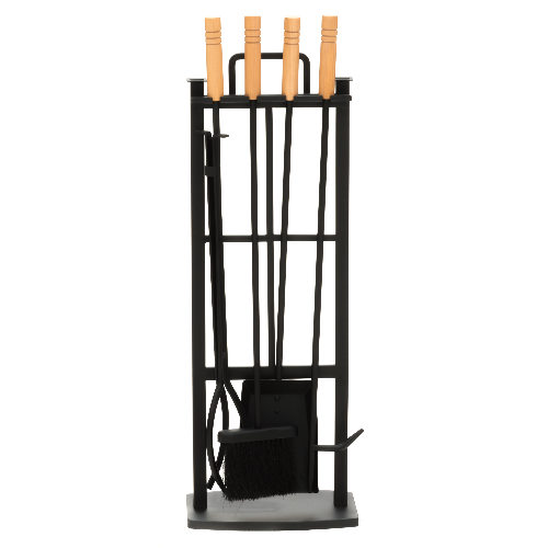 19,5 x 25,5 x 76,5 cm. 4-osainen takkasetti johon kuuluu hiilihanko, tuhkalapio, takkaharja ja hiilikola.