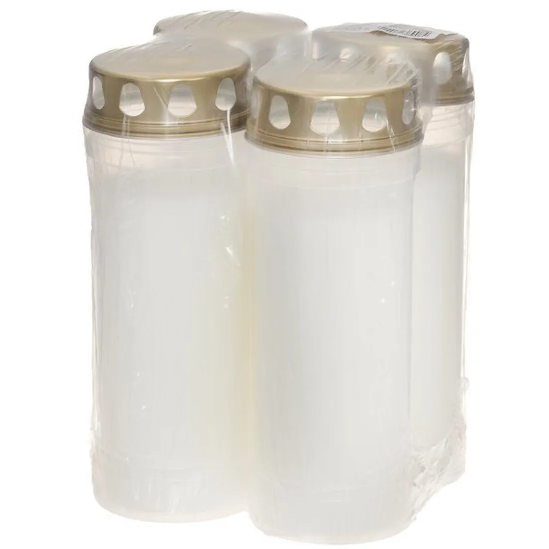 Valkoinen kannellinen hautakynttilä. Pitkä paloaika noin 82 tuntia. Korkeus 20cm