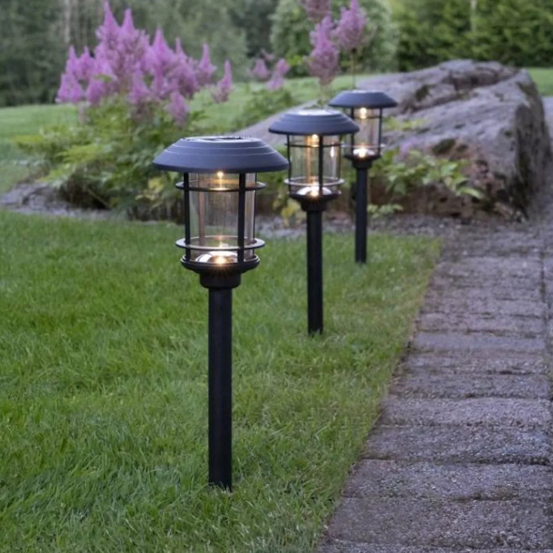 Pakkauksessa on kolme pollarivalaisinta, joiden avulla voit luoda yhtenäisen ja toimivan valaistuksen pihapiiriin. Täydellä latauksella valaisimet palavat noin 6 tuntia.