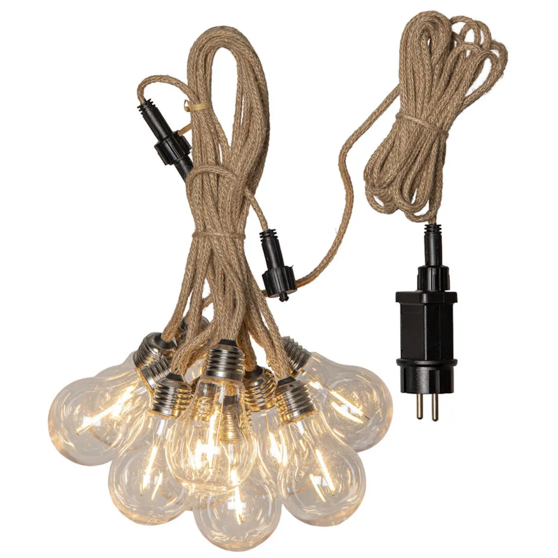 Star Trading Jutta -valosarja on tyylikäs ja tunnelmallinen ulkovalosarja, joka sopii täydellisesti puutarhaan, terassille tai parvekkeelle. Beigensävyinen juuttipäällysteinen kaapeli tuo luonnollista ilmettä ja viimeistelee ulkotilan sisustuksen.