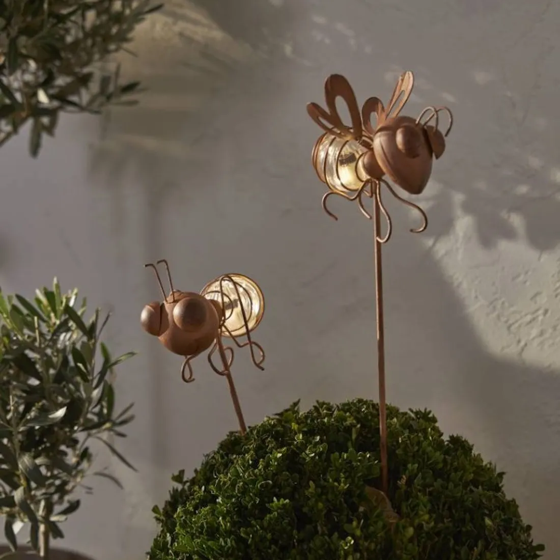 Oxida Bug -aurinkokennokoristeet tuovat pihaan tai parvekkeelle persoonallista ilmettä. Setti sisältää kaksi ruosteenvärisestä metallista valmistettua hyönteishahmoa – muurahaisen ja kärpäsen – jotka toimivat sekä koristeena että valaisimena.
