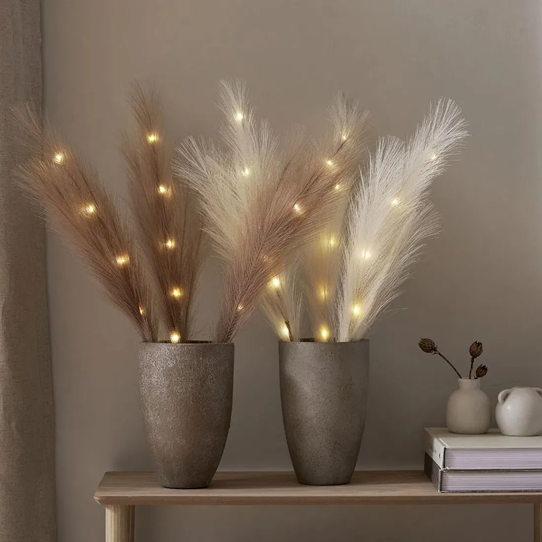 Star Trading Fjäderkvist Plumes on näyttävä ja ilmava sisustuselementti, jossa yhdistyvät suuret ruskeat tekohöyhenet ja lämmin valaistus. Koriste tuo pehmeää tunnelmaa ja toimii kauniina katseenvangitsijana kodin eri tiloissa.