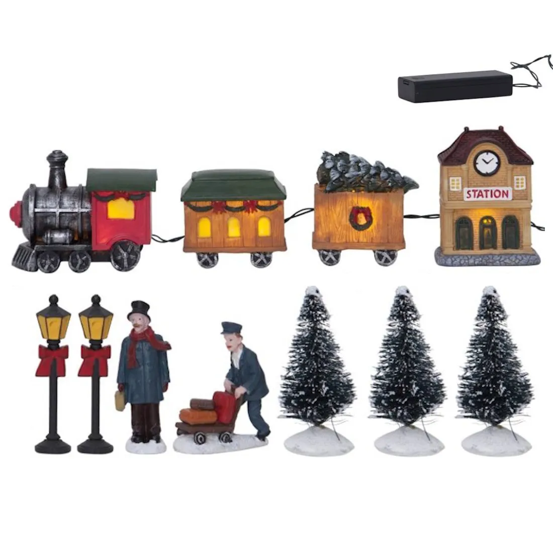 🚂 ✨ Star Trading Miniatyyri Juna-asema – valaistu kylä, 12-osainen ✨